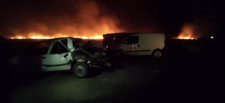 Jandarma ekipleri de bölgede güvenlik önlemi alırken, itfaiye ekipleri ise anız yangınını kontrol altına aldı.