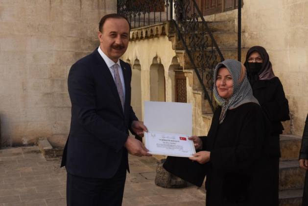 Şanlıurfa Valisi Abdullah Erin, Halilürrahman Külliyesindeki paylarını hibe ederek şehre tarihi ve kültürel anlamda çok önemli bir destek veren hissedarlara teşekkür belgesi verdi.