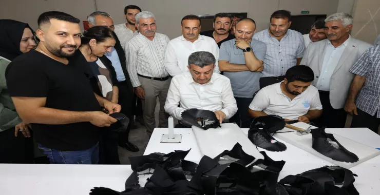 IMG 20250729 WA0088İlk olarak OSB Müdürü Osman Oktay ve müteşebbis heyetiyle bir araya gelen Başkan Günbeği, daha sonra bölgede bulunan fabrikaları ziyaret etti. Fabrika ziyareti sırasında işçilerle yakından ilgilenen Başkan Günbeği, onlarla birlikte ayakkabı dikti. Fabrikadaki işçilerle birlikte ayakkabı yapım sürecine katılarak onlarla birlikte ayakkabı yapan Başkan Günbeği, işçilerin talep ve önerilerini dinledi.