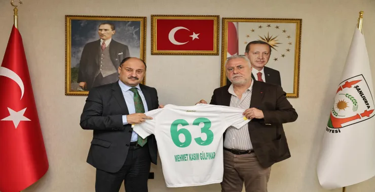 Şanlıurfaspor Kulüp Başkanı Mustafa Kemal Saraçoğlu ile Yönetim Kurulu üyeleri Büyükşehir Belediye Başkanı Mehmet Kasım Gülpınar’ı ziyaret ederek takımın formasını hediye etti.