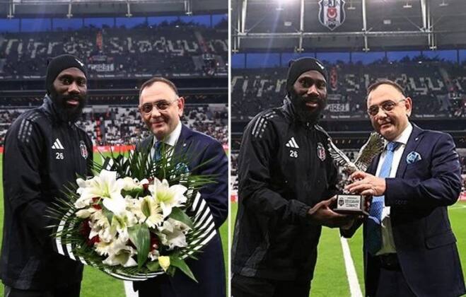 Karşılaşma öncesinde Beşiktaş Asbaşkan Murat Kılıç, tecrübeli sol beke plaket verdi.