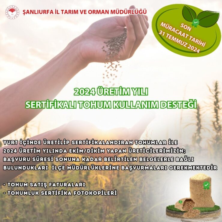 Şanlıurfa İl Tarım ve Orman Müdürlüğü, sertifikalı tohum desteğinden yararlanmak isteyen çiftçiler için önemli bir duyuru yayımladı.