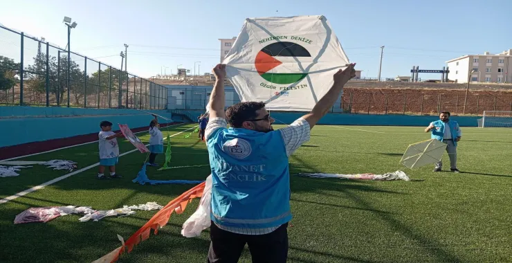 Uçurtma şenliği renkli görüntülere sahne oldu. Gökyüzü Filistin bayrağı desenli uçurtmalarla süslendi. Çocukların hem eğlenmesini hem de kaynaşmasını sağlayan etkinliklerin devam edeceği belirtildi.