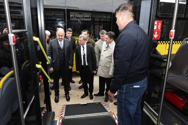 Başkan Mehmet Kasım Gülpınar ve beraberindeki protokol üyeleri, daha sonra toplu taşıma filosuna yeni katılan otobüsleri inceledi. Otobüs sürücüleriyle sohbet eden Başkan Gülpınar, daha sonra direksiyon başına geçerek, alanda kısa bir test sürüşü gerçekleştirdi.