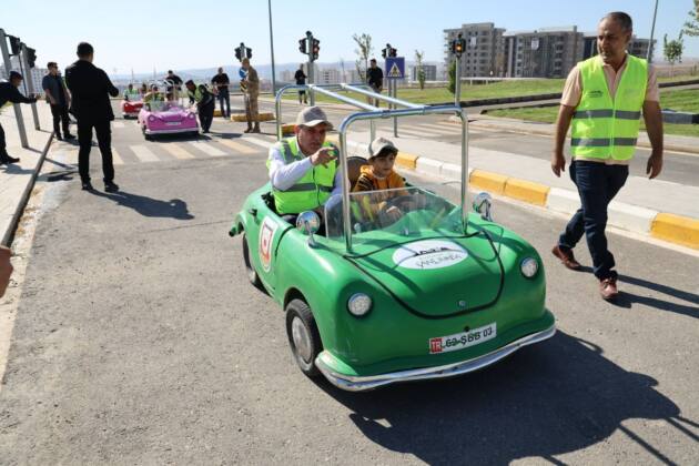 Çocuk Trafik Eğitim Parkında düzenlenen trafik eğitimine katılan Başkan Beyazgül, çocukların kullandığı akülü araca binerek trafikte şaka olmaz mesajı verdi.