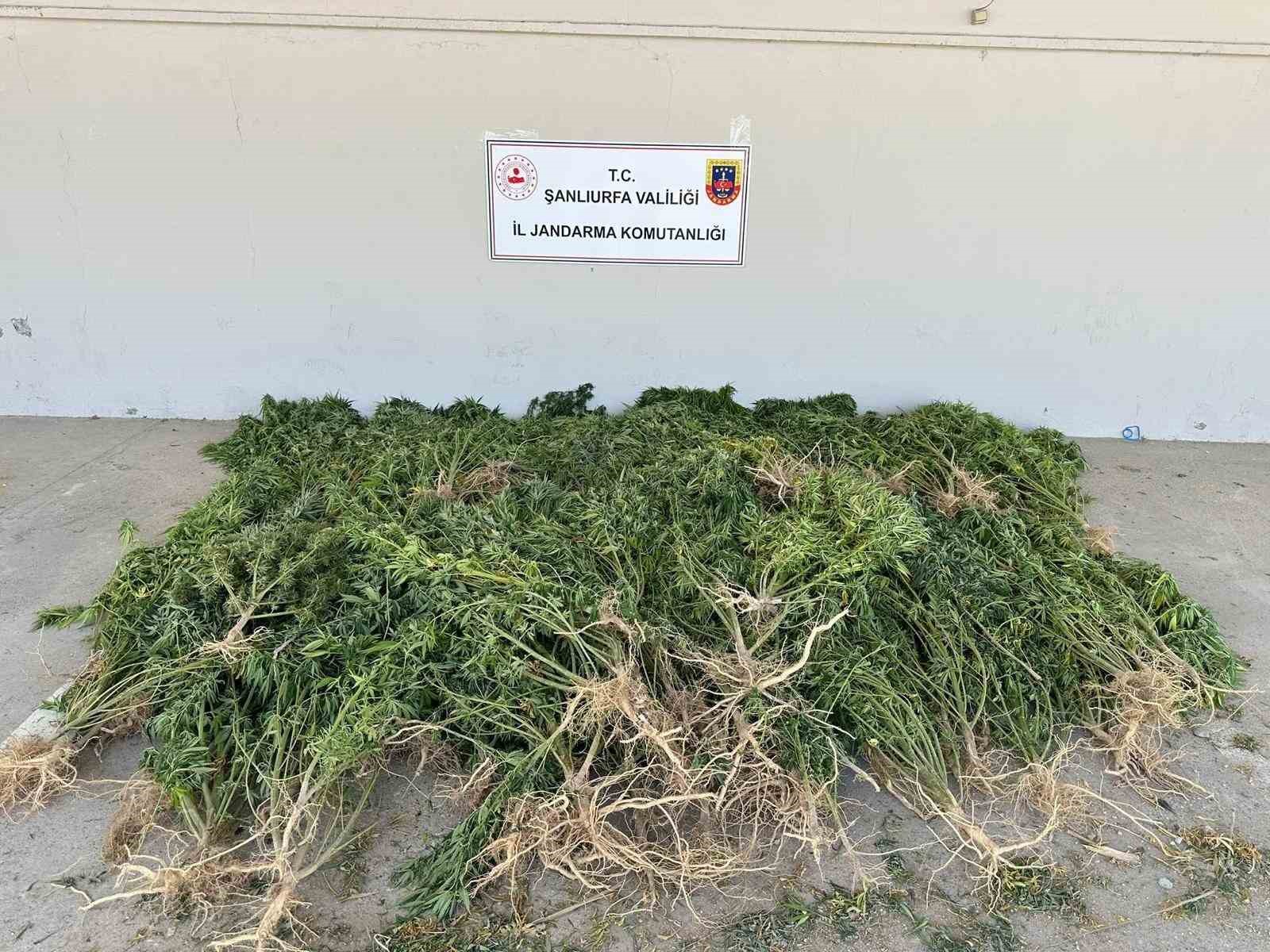 Şanlıurfa İl Jandarma Komutanlığı ile Birecik İlçe Jandarma Komutanlığı ekipleri, kırsal Bağlarbaşı Mahallesi’ndeki bir evin bahçesinde kenevir yetiştirildiği ihbarı aldı.