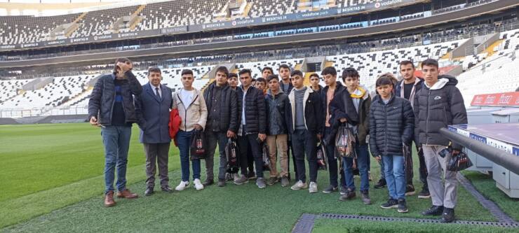 Beşiktaş Vodafone Park Stadyumuna inerek yedek kulübesinde fotoğraf çektiren gençler, Beşiktaş forması hediye edildikten sonra kulüpten uğurlandılar.