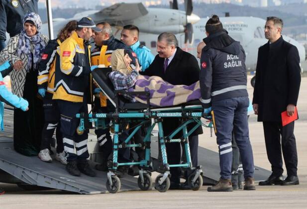 İsrail’in saldırıları nedeniyle Gazze’de tedavileri yarım kalan 61 hasta ile beraberindeki 49 refakatçi, Ankara’ya getirildi. Sağlık Bakanı Fahrettin Koca, Gazze’de Türkiye’nin sahra hastanesi kurma talebini İsrail Sağlık Bakanı’na ilettiğini, olumlu cevap aldığını söyledi