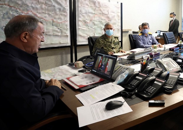Akar, Kara Kuvvetleri Komutanlığı Harekat Merkezi’nden Pençe Şimşek ve Pençe Yıldırım operasyonlarına katılan birlik komutanlarıyla video konferansla görüşerek operasyonlara ilişkin talimatlarını verdi.