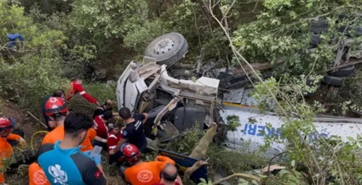 Sabah saatlerinde kısmen kontrol altına alınan ancak bugün fırtına etkisiyle alevlerin tehdit ettiği Ağlaşan köyüne müdahale için yola çıkan su tankeri, sarp arazide kontrolden çıkarak uçuruma sürüklendi.