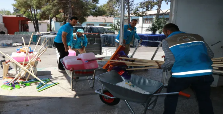IMG 20250604 WA0004Temizlik İşleri Müdürlüğü 550 personel ve 987 araçlık filosuyla bayram boyunca sahada aktif olarak hizmet verecek. Müdürlük bünyesinde 53 çöp kamyonu, 15 arazöz, 10 traktör, 4 kepçe, 4 kamyon ve süpürge aracı görev alacak. Kurban kesim alanlarında hijyenin sağlanması amacıyla 80 adet kanca, el arabası, kürek, sıvı sabun ve çöp konteynerleri hazır hale getirildi.