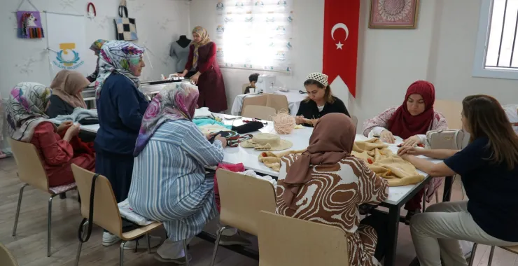 Hanımlar Konağı’nda sunulan dikiş-nakış ve trikotaj atölyelerinde kursiyerler, usta öğreticiler eşliğinde eğitim alıyor ve el emeği ürünlerini sergiliyor. Ayrıca, ahşap boyama atölyesinde eski ev eşyalarını dönüştüren kadınlar, ürünlerini yeniden değerlendirerek hem ekonomik hem de çevresel fayda sağlıyor. Aldıkları eğitimlerle meslek edinen kadınlar, aynı zamanda aile bütçelerine katkıda bulunuyor ve keyifli vakit geçiriyor.