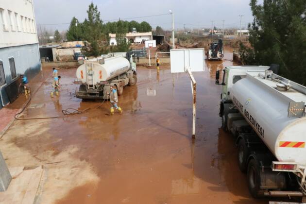Belediye Başkanı Mehmet Canpolat’ın talimatlarıyla Şanlıurfa’da etkili olan şiddetli yağış sonrası olumsuz etkilenen kırsal mahallelerde hummalı çalışmalar sürüyor.