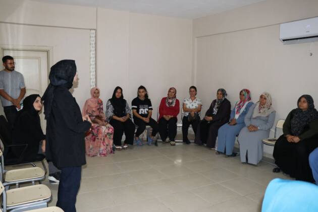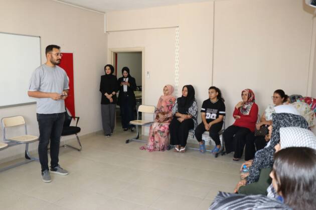 Haliliye Belediyesi bünyesinde bulunan uzman psikologlar, Ahmet Yesevi Milletevinde verdikleri psikososyal destek eğitimi ile kadınlara, deprem sonrası oluşan travmalara yönelik seminer verdi.