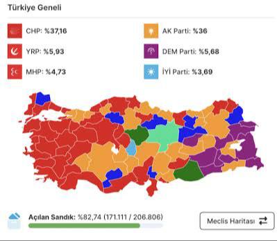 Şu ana kadar açılan sandıklara göre sonuçlar şöyle: