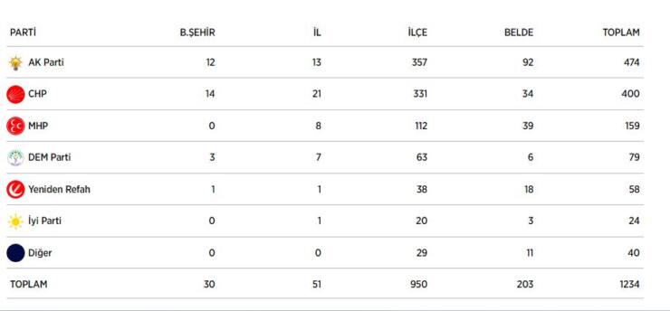 AK Parti halşa 477 belediye ile en çok belediyeye sahip olan parti. Bitlis’te DEM ile AK Parti arasında kıran kırana bir yarış sürüyor.