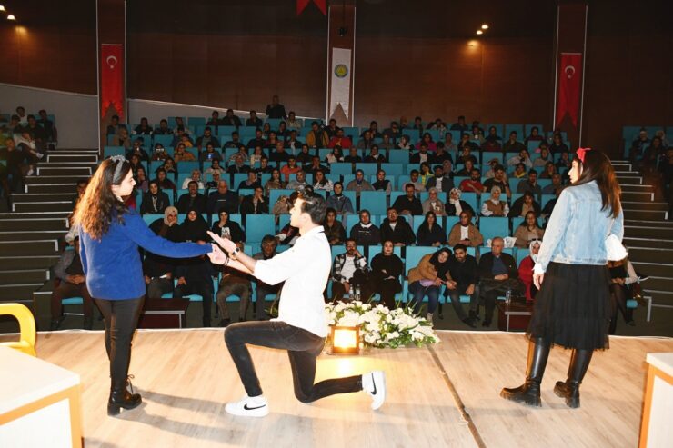 Harran Üniversitesi’nde kültürel ve sanat etkinlikleri kapsamında Mavi Sanat Topluluğu tiyatro ekibi tarafından ”Artiz Mektebi” isimli tiyatro gösterimi yapıldı.