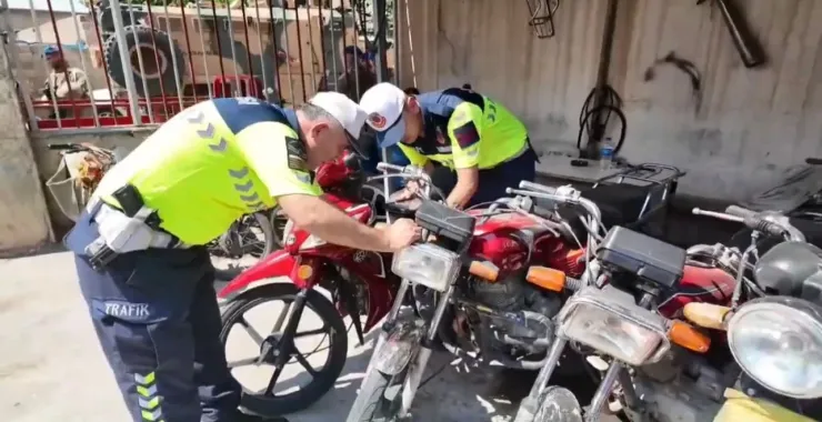 Eyyübiye ilçesinde iki farklı işyerinde Motosiklet hırsızlığı yaparak şase numaraları kazıdıktan sonra tekrar satış yapan işyerlerinde yapılan aramada 16 usulsüz hurdaya çıkarılmış motosiklet, 12 tescilsiz motosiklet, 2 çalıntı motosiklet, 2 şase numarası kazınmış motosiklet, 2 trafikten men edilmiş motosiklet, 1 haciz yakalamalı motosiklet ile 1 çalıntı plaka ele geçirildi.