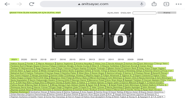 2008 yılından bugüne kadar cinayete kurban giden kadınların isimleri yazılı anıtta. İsmin üzerine dokunulduğunda o cinayete ilişkin haberlere açılıyor. Her birinin ardında bir yaşam öyküsü yatıyor.