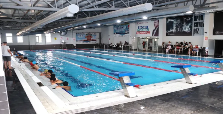 Karaköprü Belediyesi bünyesinde açılan yüzme kursları ile 7-14 yaş arası çocuklar tatilini yüzme öğrenerek değerlendiriyor