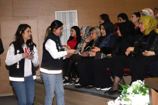 Programda polis ekipleri kadınlara KADES uygulamasının önemini ve kullanımını anlattı. Kadın Acil Destek Uygulamasının (KADES) kadınların ve çocukların maruz kaldığı şiddet ve tehdit anlarında emniyet güçlerine hızlıca ulaşmalarını sağladığını belirten ekipler, uygulamanın indirilmesi ve aktif kullanımı konusunda bilgilendirme yaptı.