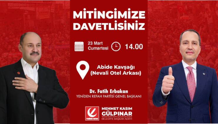 Yeniden Refah Partisi Şanlıurfa Büyükşehir Belediye Başkan Adayı Mehmet Kasım Gülpınar, “23 Mart Cumartesi Günü, Saat 14:00’da Genel Başkanımız Dr. Fatih Erbakan’ın katılacağı Şanlıurfa Mitingine tüm vatandaşlarımızı bekliyoruz” dedi.