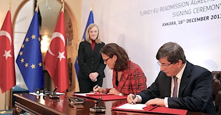 Anlaşmaya Türkiye adına dönemin Dışişleri Bakanı Ahmet Davutoğlu ile AB İçişleri Komiseri Cecilia Malmström imza koydu.