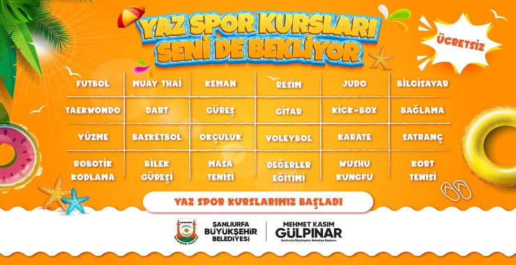 WhatsApp Image 2025 07 01 at 15.27.57Şanlıurfa Büyükşehir Belediyesi, Türkiye’nin en genç nüfusuna sahip illerinden biri olan Şanlıurfa’da çocukların yaz tatilini verimli, güvenli ve eğlenceli geçirmesi amacıyla 2025 Yaz Spor ve Kültür Kursları’nı başlattı. 30 kültürel, 15 sportif branşta açılan ücretsiz kurslarla binlerce genç sporla, sanatla ve bilimle buluşuyor.
