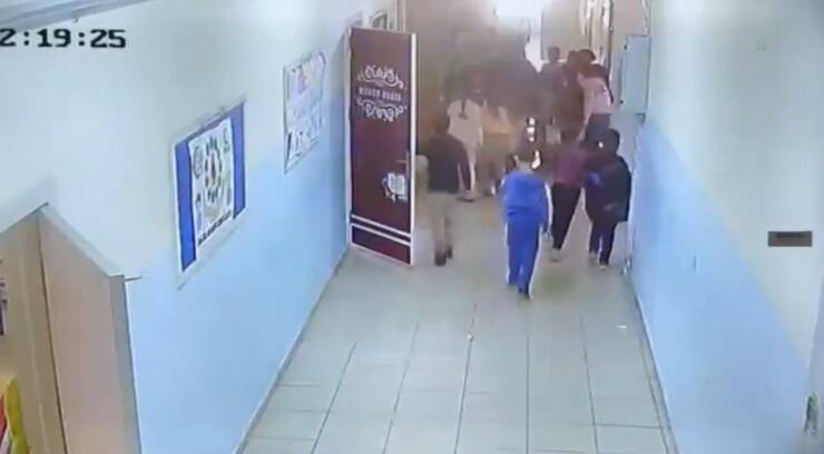 Öğrencinin heimlich manevrası ile kurtarılma anları güvenlik kamerasına yansıdı.