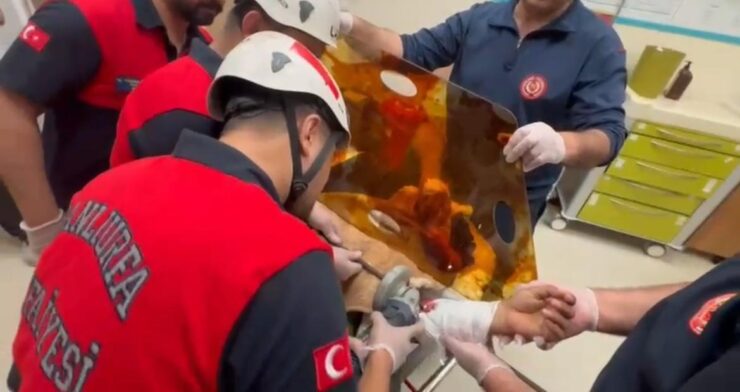 Harran Üniversitesi Hastanesine götürülen işçinin imdadına itfaiye ekipleri yetişti. Ekipleri işçinin koluna saplanan demiri uzun uğraşlar sonucunda çıkardı.