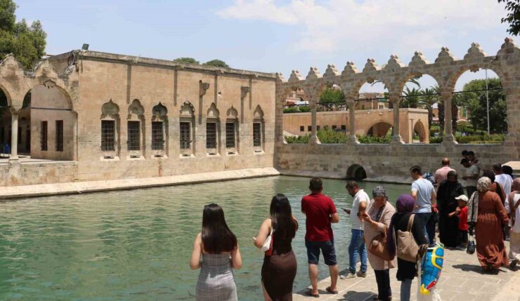 Sıcak havanın bunalttığı vatandaşlar, Balıklıgöl’e akın etti. Vatandaşlar serinlemek için tarihi Balıklıgöl çevresi ile benzeri gölgelik alanları tercih etti.