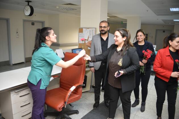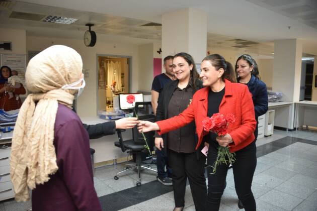 Başkan Yardımcısı Began, Başhekim Ahmet Yiğitbay ile birlikte hastane birimlerini gezerek sağlık çalışanları, hasta ve hasta yakınlarıyla bir araya geldi. Ziyaret sırasında kadınlara karanfil dağıtan Began, onların 8 Mart Dünya Kadınlar Günü’nü kutladı.