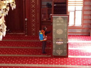 Bayram namazına hazırlık kapsamında Temizlik İşleri Müdürlüğü ekipleri tarafından yürütülen çalışmalarla cami ve mescitlerin temizliği tamamlandı. Ardından, camiler gül suyu ile yıkanarak bayram namazına gelen vatandaşların ferah bir ortamda ibadet etmeleri sağlandı.