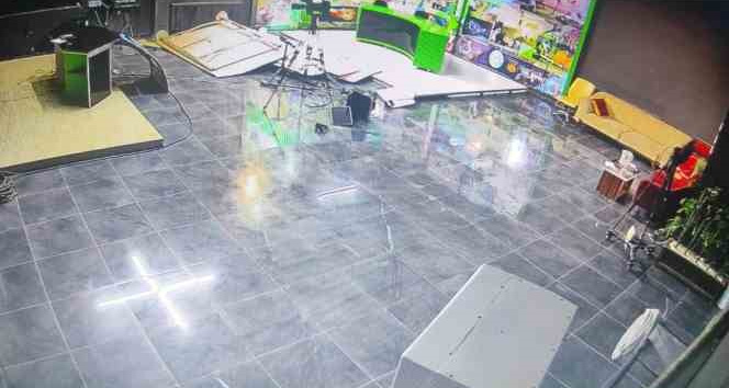 Türkiye’de yaşanan yüzyılın en büyük depremlerinin ardından yaralar sarılmaya başlanırken, iki büyük sarsıntının yaşandığı anlar, güvenlik kameralarına yansıdı. Şanlıurfa’da uydu yayını yapan Teve63 televizyonu da büyük sarsıntıdan nasibini aldı. Depremin yaşandığı görüntülerde, kamera, bilgisayar gibi ekipmanların sarsıntının şiddetiyle yere serildiği görüldü. Stüdyo ve reji odasının beşik gibi sallandığı görüntülerin devamında, bir televizyon çalışanın ani refleksle masanın altına girerek, kendini korumaya çalıştığı görülüyor. Güvenlik kamerasına yansıyan görüntülerde, depremin ne kadar şiddetli olduğu gözler önüne serildi.
