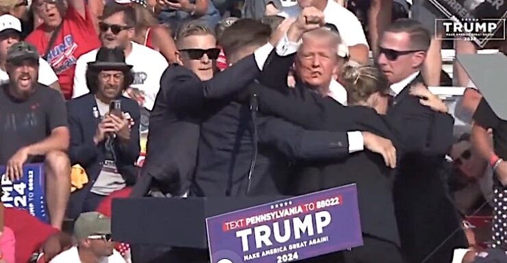 ABD Gizli Servis ajanları tarafından hızla etrafı sarıldı ve sahneden indirilerek bekleyen bir araca götürüldü. Trump’ın arabaya götürülürken sağ yumruğunu havaya kaldırarak sinirli bir şekilde destekçilerine “mücadeleye devam” mesajı erdiği görülüyor. Koruma görevlileri onu hızla uzaklaştırırken Trump’ın kulağında ve yüzünde kan açıkça görülüyordu.