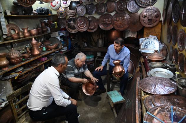 Kent ekonomisinin gelişimi için orta ölçekli esnaf gruplarının her zaman yanında olmaya devam edeceklerini belirten Vali Ayhan, zanaatkârların tezgâhına geçerek kimi zaman demir işledi, kimi zaman da bakırlara şekil verdi.