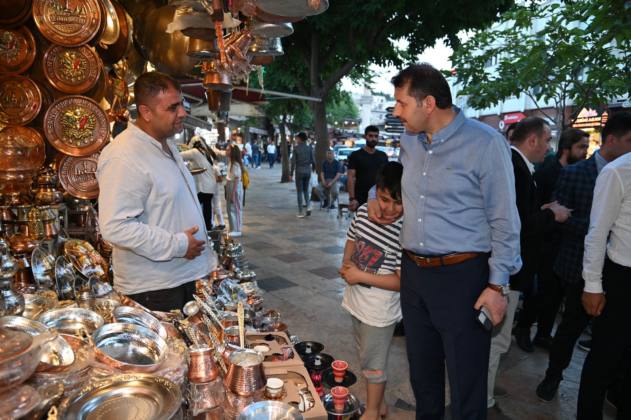 Haşimiye Meydanı, Barutçu Hanı ve Bakırcılar Çarşısı’nda gidilmedik yer bırakmayan Vali Ayhan, Şanlıurfa’daki görev süresi boyunca halkın içinde olmaya hassasiyet göstereceklerini dile getirdi.