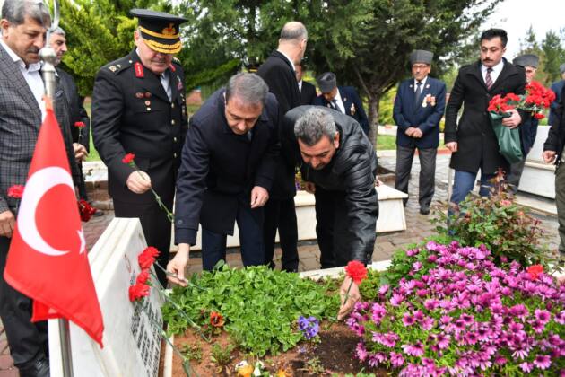 Vali Hasan Şıldak, bugün akşam saatlerinde İl Emniyet Müdürü Erdem Bildirici, İl Jandarma Komutanı Tuğgeneral Mücahit Avkıran ile birlikte Şehitlik ziyareti gerçekleştirdi. Şehit ailelerinin de katılım sağladığı ziyarette ailelerle birebir görüşen Vali Şıldak ardından kabirleri ziyaret ederek karanfil bıraktı. Kabirlerde dualara eşlik eden Vali Şıldak, “Vatanı uğruna canını feda etmekten çekinmemiş tüm Şehitlerimizi rahmetle anıyoruz. Onlar vatanımızın var oluşunun temeli ve kahramanlarıdır. Aileleri de bizlere emanet. Her zaman olduğu gibi yine ailelerimizle sürekli olarak bir araya gelmeye devam edeceğiz” dedi.