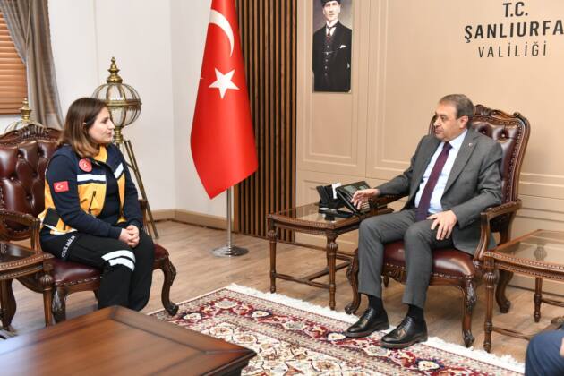 Şanlıurfa Valisi Hasan Şıldak, boğulma tehlikesi geçiren bir bebeği kurtaran 112 sağlık çalışanı Zehra Tankuş’u başarı belgesi ile ödüllendirdi.