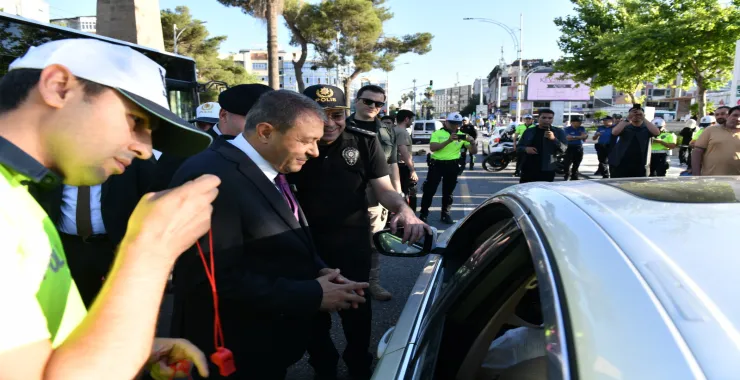 Şanlıurfa Valisi Hasan Şıldak, Kurban Bayramı arifesinde İl Emniyet Müdürlüğü tarafından bilinçlendirme amacıyla düzenlenen trafik uygulamasına katıldı.