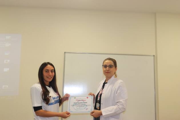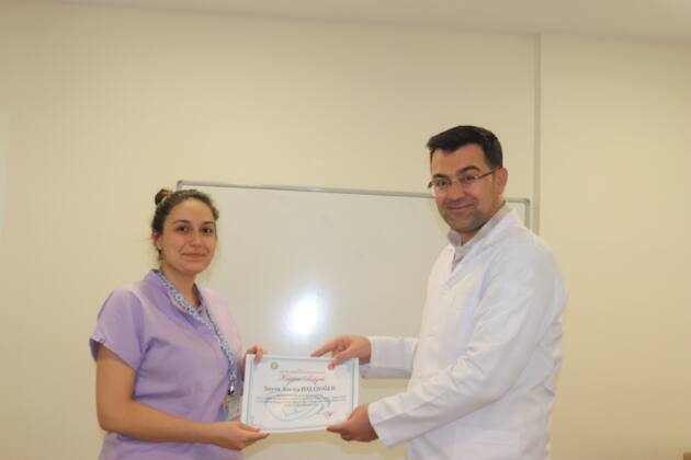 Etkinlik sonunda Harran Üniversitesi Hastanesi Başhekimİ Doç. Dr. İdris Kırhan, katılımcılara sertifika verdi.