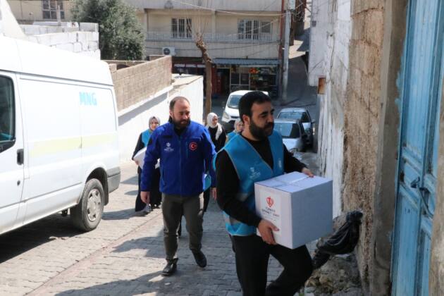 Görevlilerin büyük bir titizlikle belirlediği aileler ziyaret edilerek, gıda kolileri evlerine kadar bırakıldı.